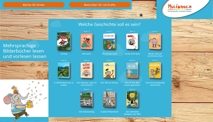 "Mulingula verbindet literarisches Lernen, Mehrsprachigkeit und sprachbildenden Unterricht. Die hochwertigen literarischen Kindertexte namhafter Autor*innen sind in besonderem Maße auf Grundschulkinder zugeschnitten. Lehrkräfte können die Angebote direkt digital und und die zahlreichen Downloadmaterialien auch ganz klassisch analog im Unterricht einsetzen.